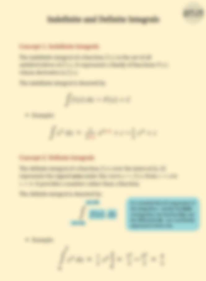This is a magic summary of the "Indefinite & Definite Integration" topic in Calculus. It introduces unique methods that helps you solve indefinite & definite integration questions in just one or a few lines. The summary covers the main concepts found in most "Indefinite & Definite Integration" curricula, with each concept followed by a detailed example using the method outlined in the guide. It's a PDF you can print and keep handy for your midterm and final exams!